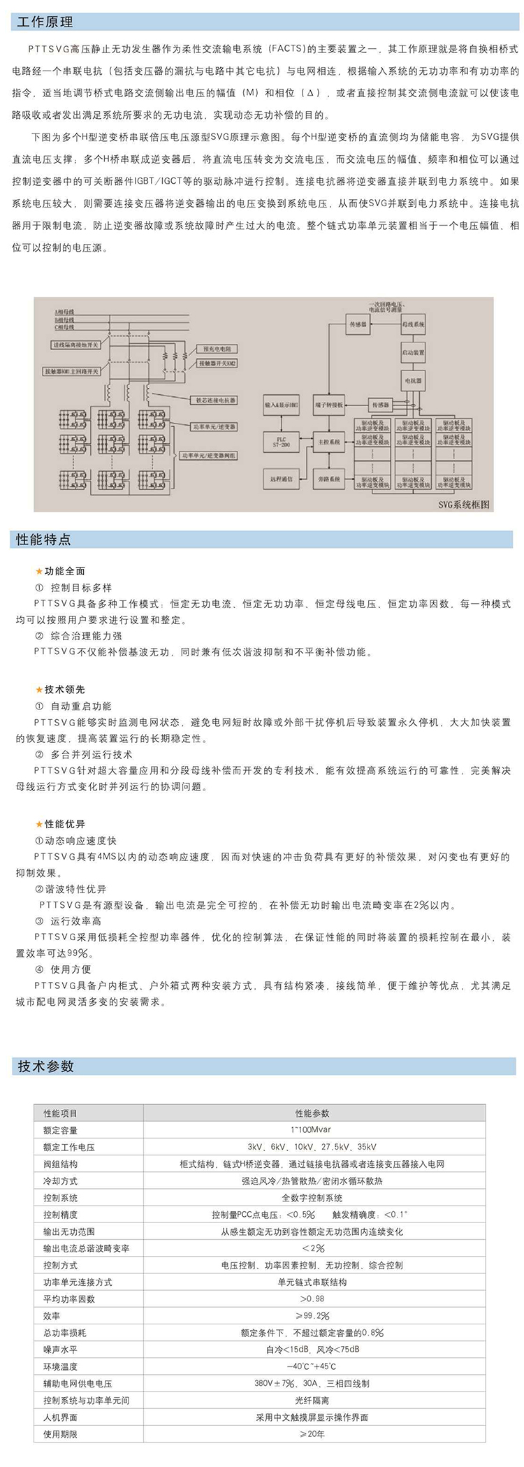 PTTSVG高壓靜止無(wú)功發(fā)生器采用級(jí)聯(lián)技術(shù),由多個(gè)H型逆變橋串聯(lián)實(shí)現(xiàn)倍壓,裝置控制系統(tǒng)采用主從模式,可精確實(shí)現(xiàn)監(jiān)測(cè)與控制。目前該系列產(chǎn)品可用于變電站、新能源發(fā)電、電氣化鐵路、冶金、礦山等領(lǐng)域,為電網(wǎng)或用電負(fù)荷提供快速的動(dòng)態(tài)無(wú)功補(bǔ)償和諧波抑制,可有效提高電網(wǎng)電壓暫態(tài)穩(wěn)定性、抑制母線(xiàn)電壓閃變、補(bǔ)償不平衡負(fù)荷、濾除負(fù)荷諧波及提高負(fù)荷功率因數(shù)。